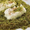 Yumuşayıp pürüzsüz kıvama gelen cennet çamuru tatlısını servis tabağına alıp yaydırın. Üstüne kalan şerbeti ve Antep fıstıklarını da gezdirin.
