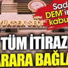YSK 5 partinin yaptığı itirazları karara bağladı. Buna göre CHP, AKP, YRP, DEM ve MHP’nin yaptığı itirazlarda yalnızca DEM partinin yaptığı itiraz kabul edildi.