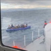 Ölüme terk edilen kaçak göçmenlerin bulunduğu bölgeye yetişen Sahil Güvenlik ekipler ip atılarak, botun yanına çekildi.