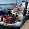 AA''nın haberine göre, Bademli açıklarında lastik bot içerisinde bir grubun olduğu bilgisi üzerine, bölgeye sahil güvenlik botları sevk edildi.