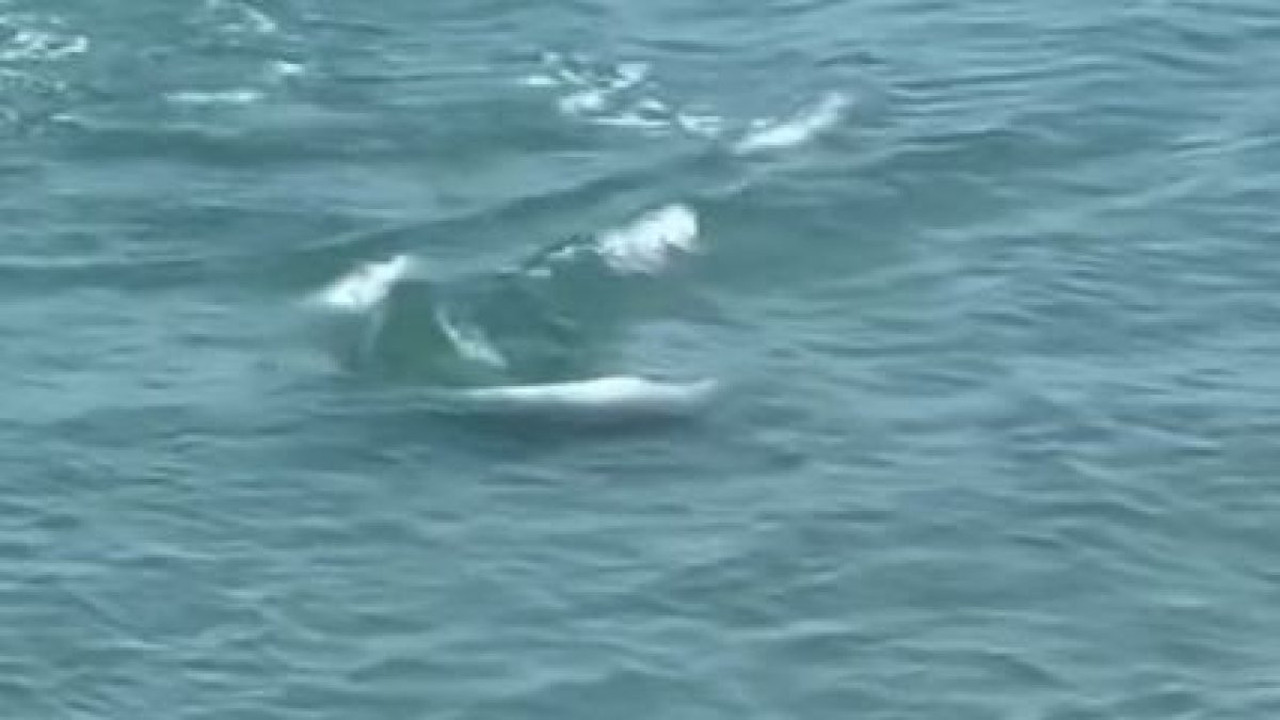 Kastamonu'nun Cide ilçesinde vatandaşlar Cide Limanı mevkiinde yürüyüş yaptıkları sırada yunus balıklarını fark etti.