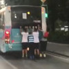 Sultangazi Esentepe Mahallesi Hoca Ahmet Yesevi Caddesi'nde kaydedilen iki farklı görüntüde, patenci gençlerin özel halk otobüsünün arkasına takılarak ve seyir halindeki bir araca tutunarak tehlikeli yolculuk yaptığı görüldü.
