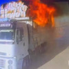 Durumu fark edip panik yapan şoför, alev alan kamyonu yol üzerindeki akaryakıt istasyonunun olduğu alana çekti. Bu sırada kasada yanan bazı saman balyaları yere savruldu.