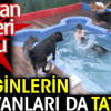 Zekeriyaköy'deki 400 kapasiteli evcil hayvan tesisinde bulunan otelde de yoğunluk 8 katına çıktı. Şu anda 100'ün üzerinde köpeğin, yaklaşık 40 kedinin konakladığı otelde hayvanlar hem birbirleriyle sosyalleşiyor hem de havuzun tadını çıkarıyor.